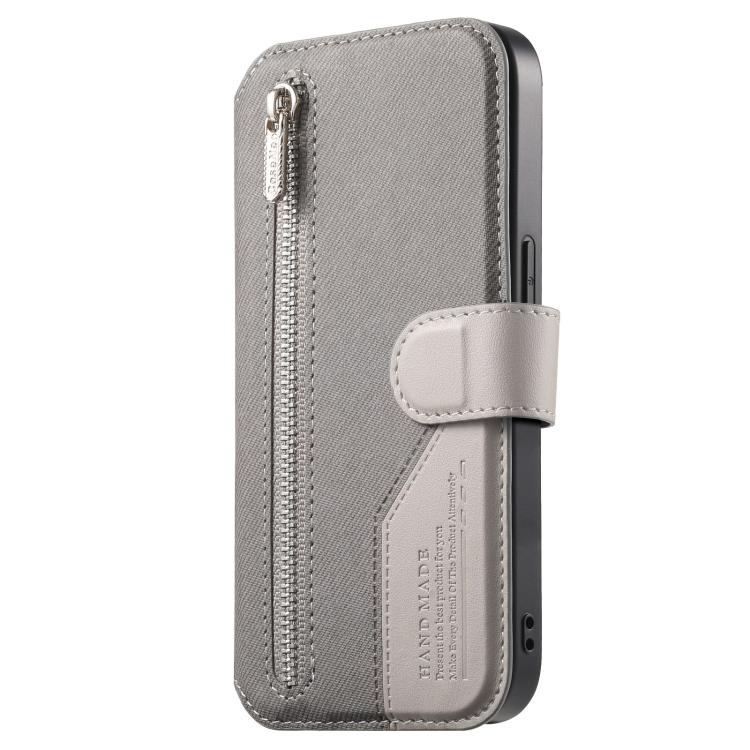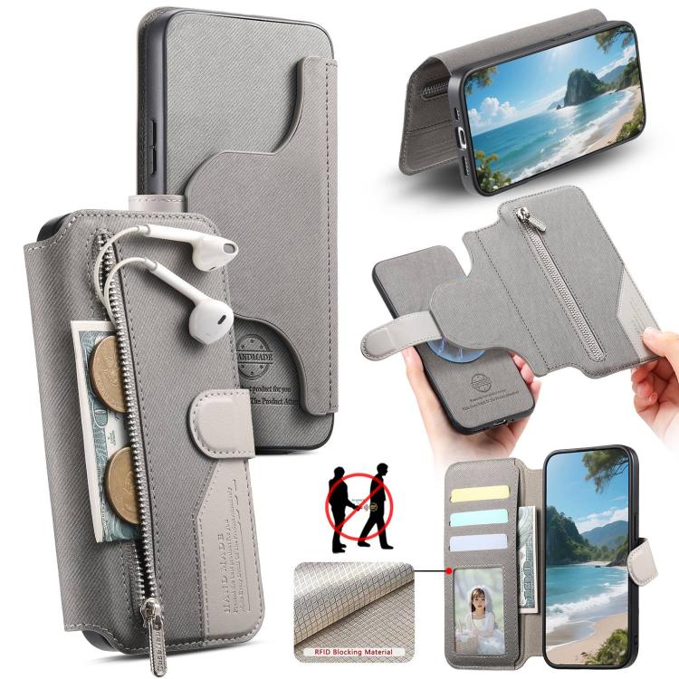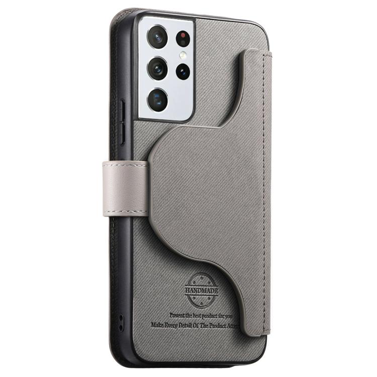 For Samsung Galaxy S21 Ultra 5G Twill Fabric MagSafe RFID Anti-theft Zipper Wallet Leather Phone Case(Grey)