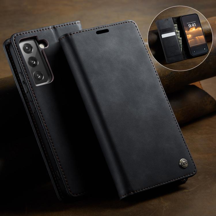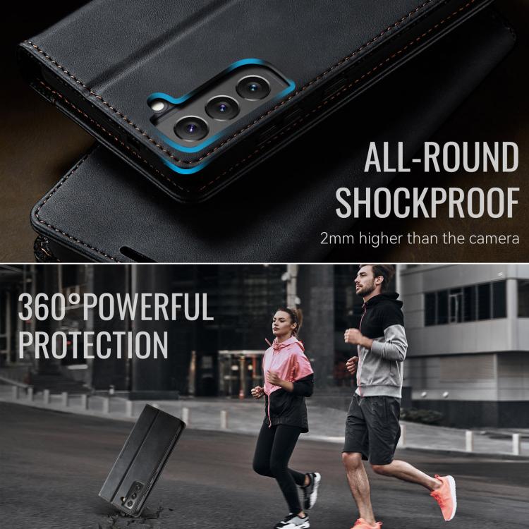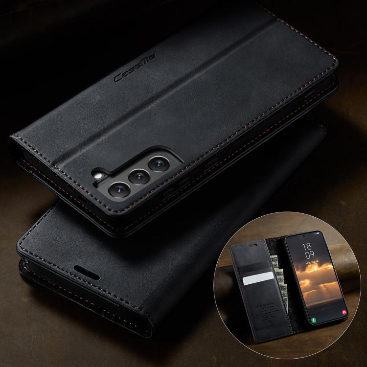 For Samsung Galaxy S22+ 5G CaseMe 033 Calf Leather Lining Microfibre RFID Blocking Phone Case(Black)