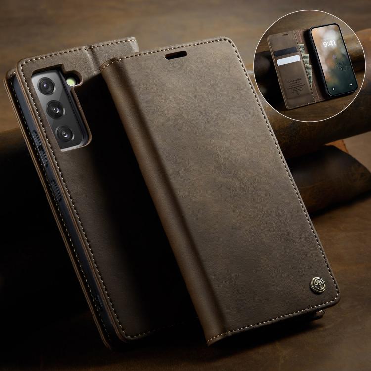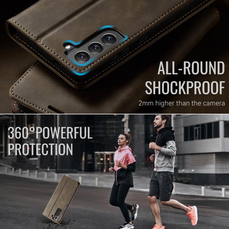 For Samsung Galaxy S22+ 5G CaseMe 033 Calf Leather Lining Microfibre RFID Blocking Phone Case(Coffee)
