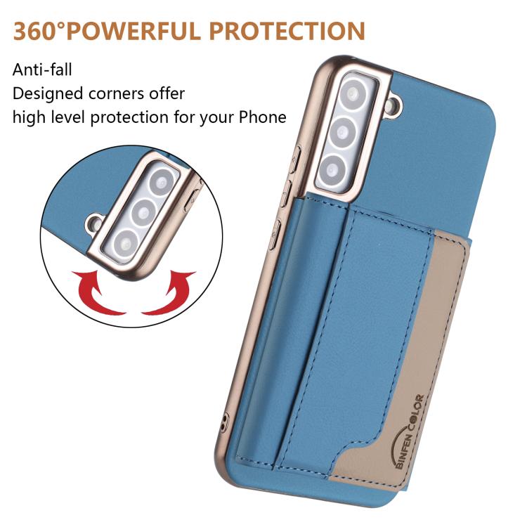 For Samsung Galaxy S22+ 5G Colour Matching Horizontal Magnetic Card Bag RFID MagSafe Phone Case(Baby Blue)