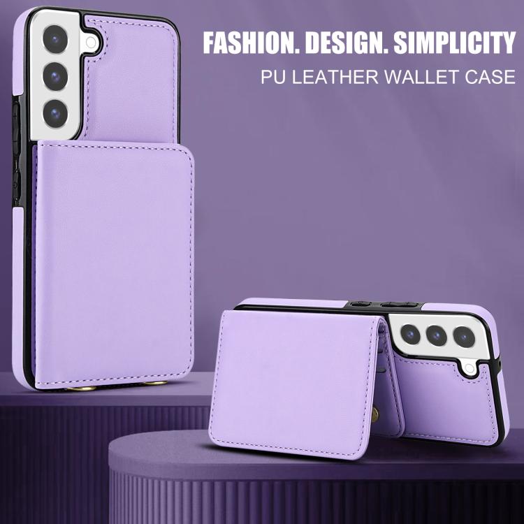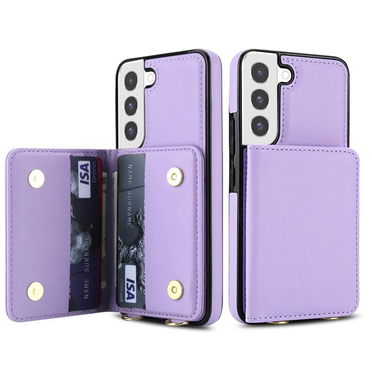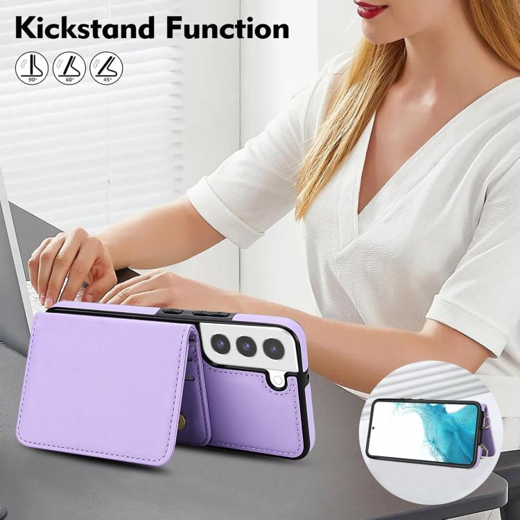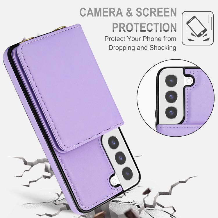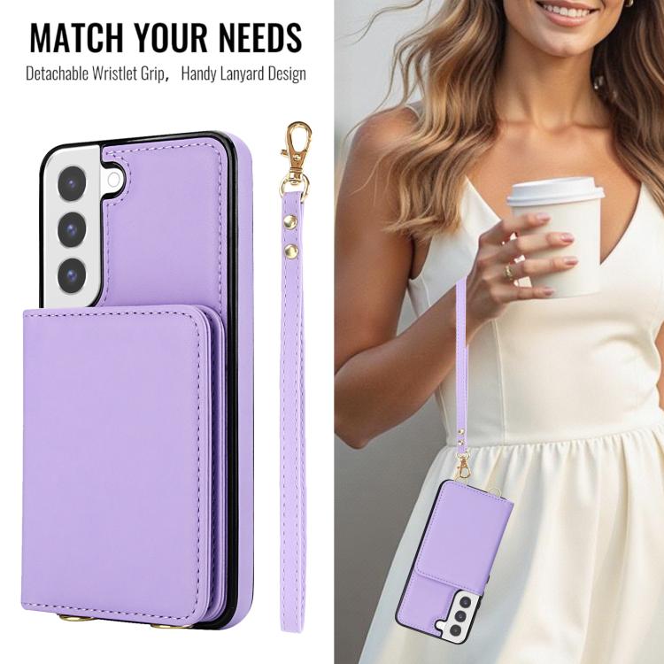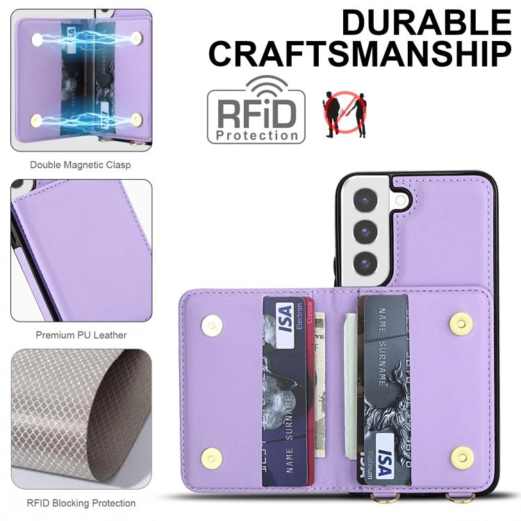 For Samsung Galaxy S22+ 5G Crossbody Dual-buckle Wallet RFID Back Leather Phone Case(Light Purple)