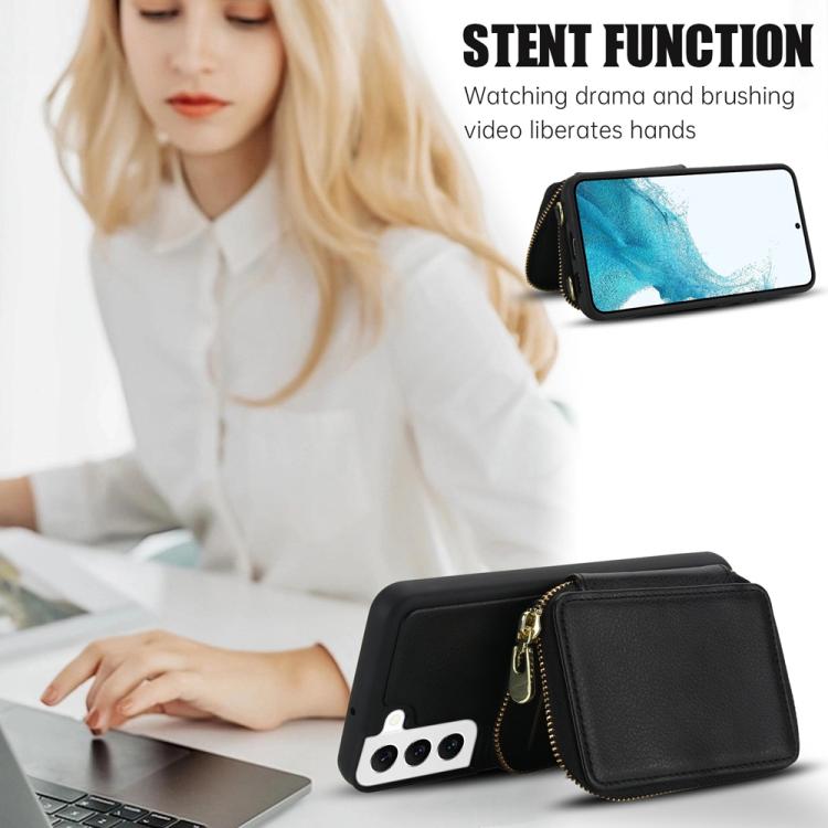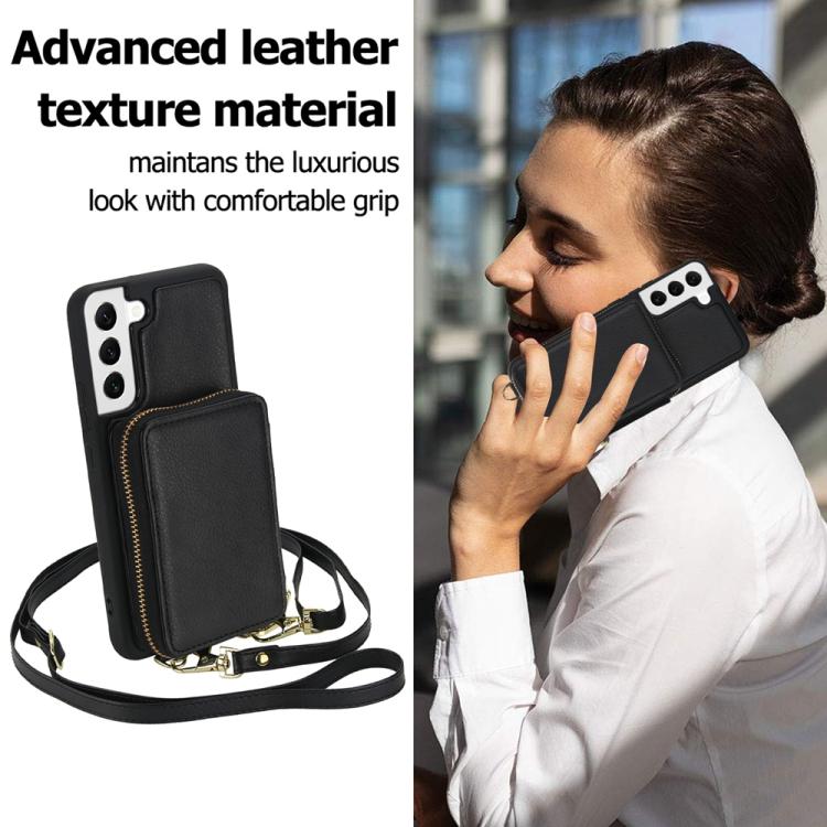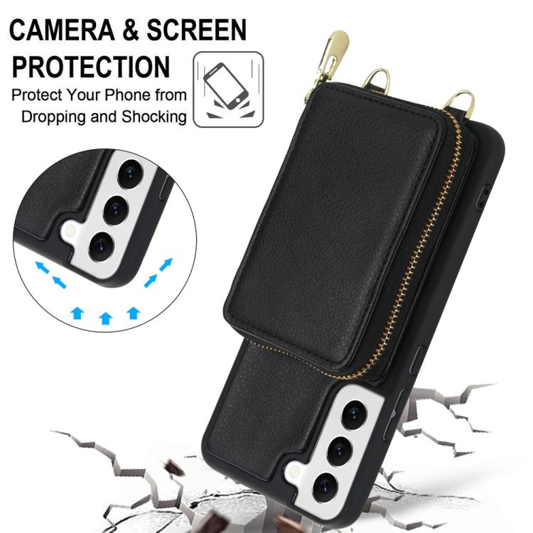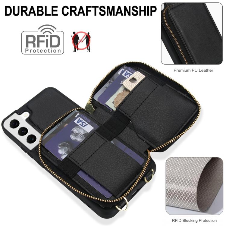 For Samsung Galaxy S22+ 5G Crossbody Zipper RFID Card Bag Phone Case(Black)
