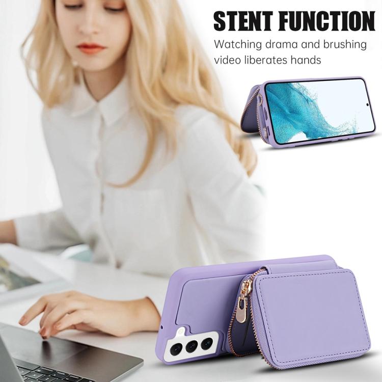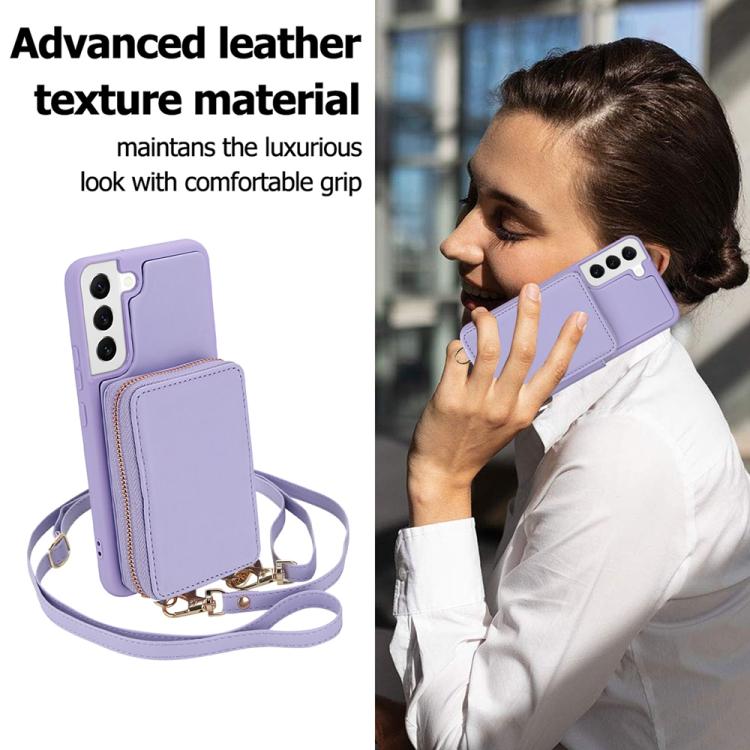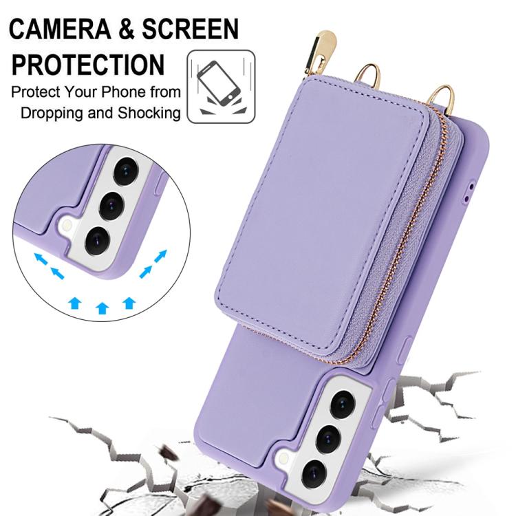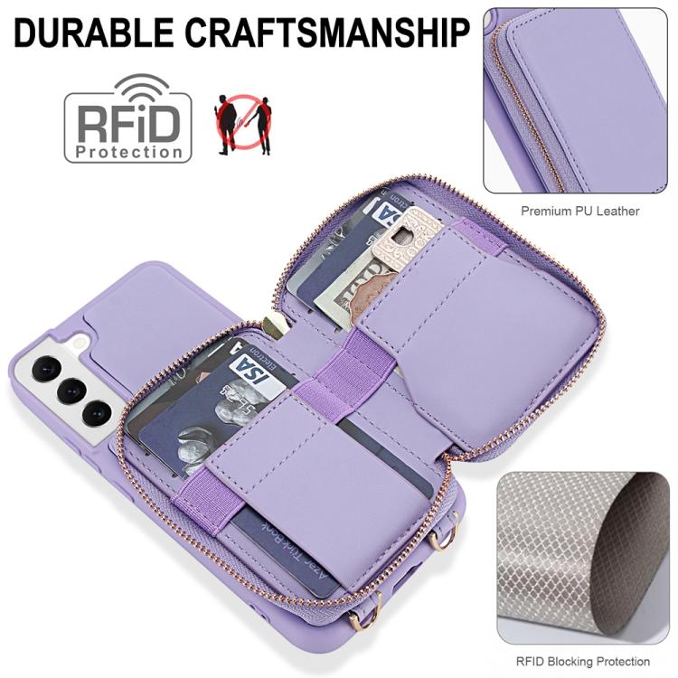 For Samsung Galaxy S22+ 5G Crossbody Zipper RFID Card Bag Phone Case(Light Purple)