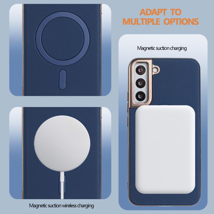 For Samsung Galaxy S22+ 5G Solid Color Plating MagSafe Full Coverage Phone Case(Dark Blue)