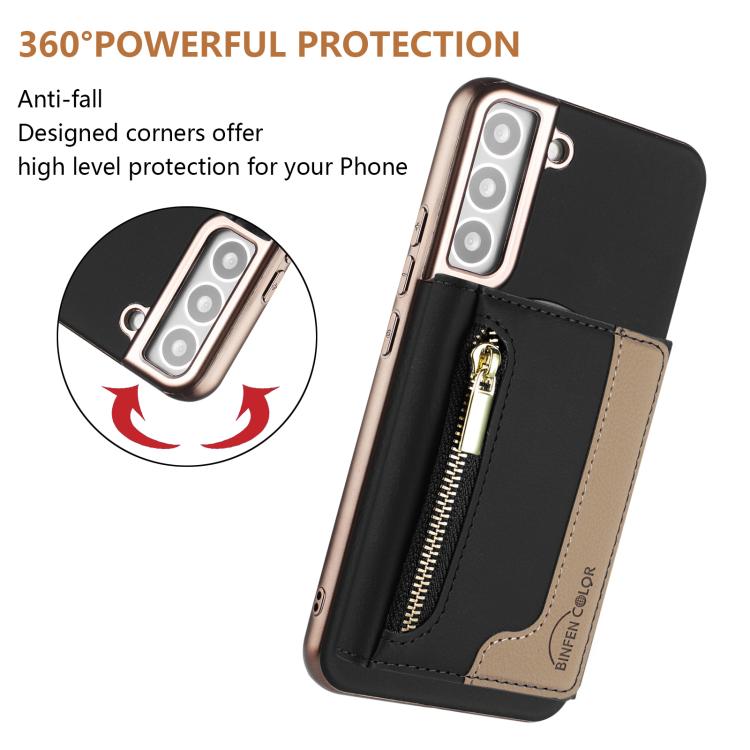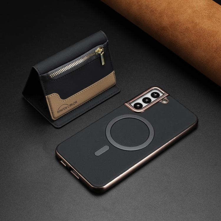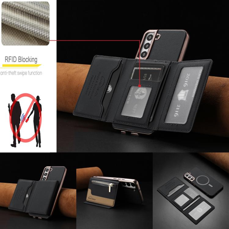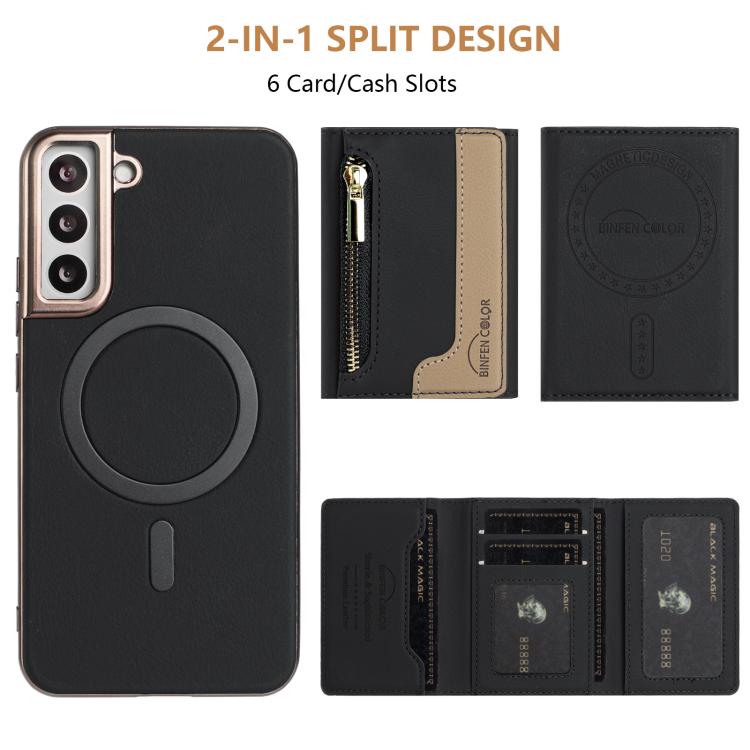 For Samsung Galaxy S22+ 5G Zipper Horizontal Magnetic Card Bag RFID MagSafe Phone Case(Black)