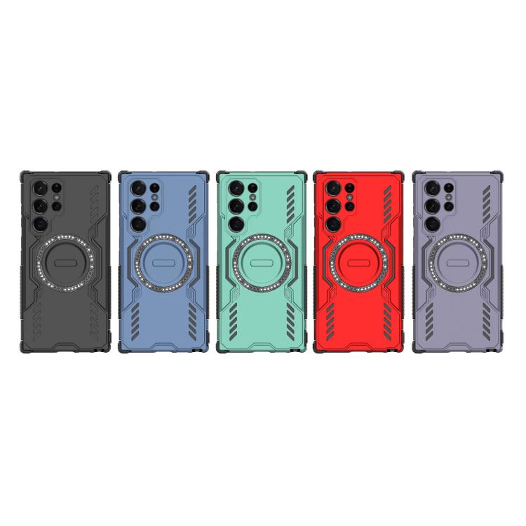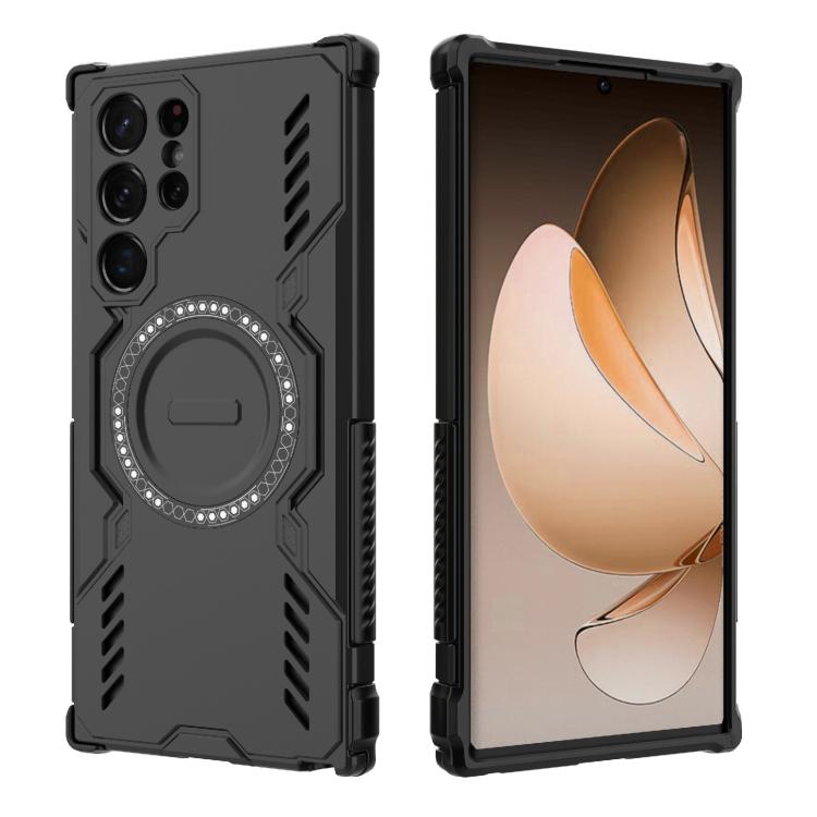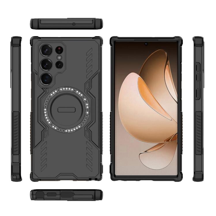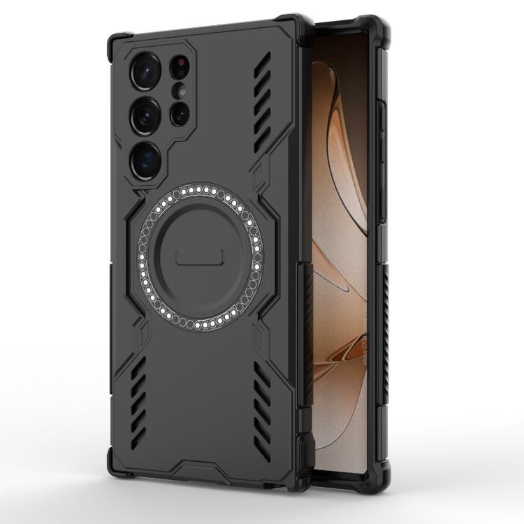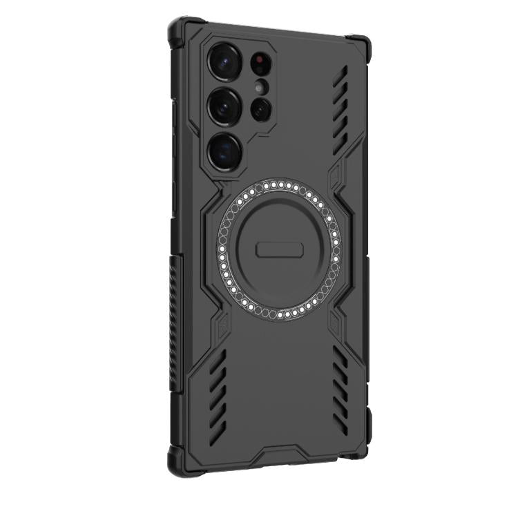 For Samsung Galaxy S22 Ultra 5G Butterfly Armor MagSafe Magnetic Ring Shockproof Phone Case(Black)