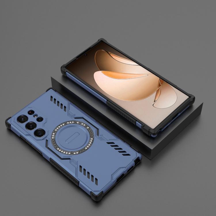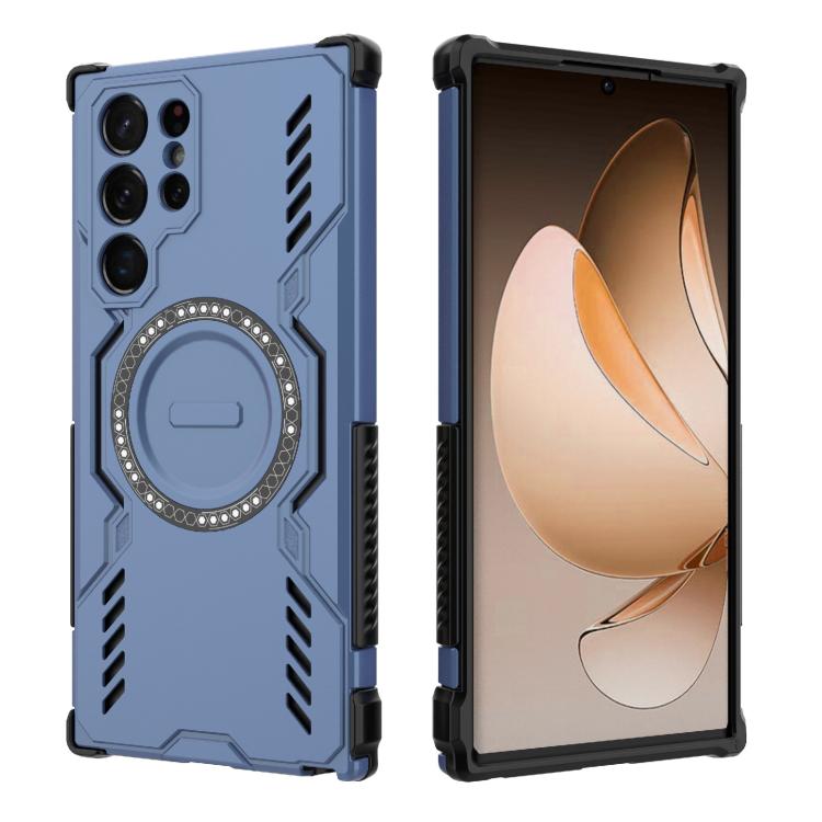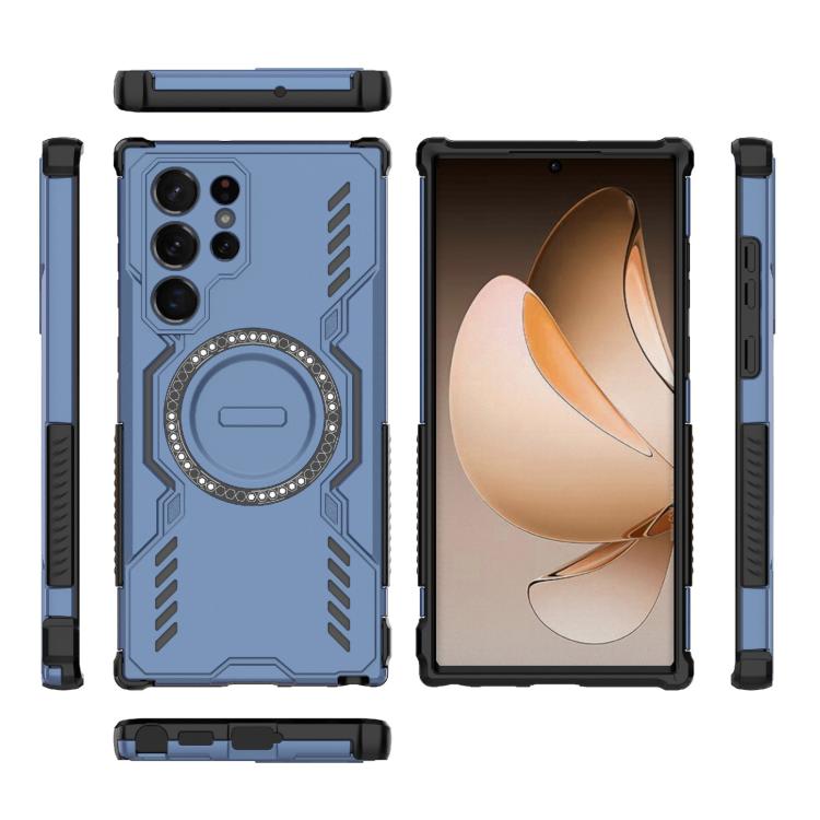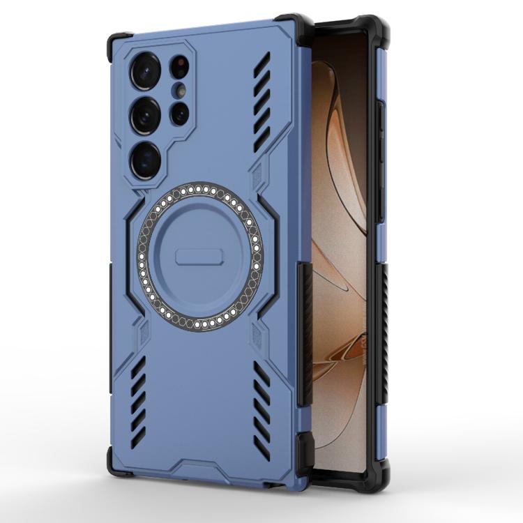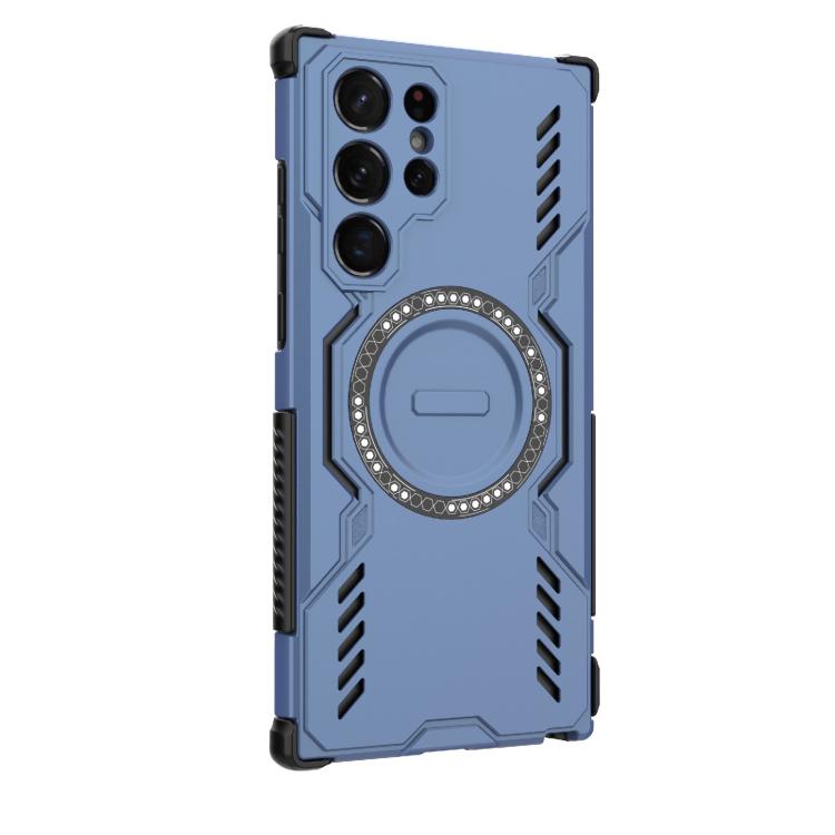 For Samsung Galaxy S22 Ultra 5G Butterfly Armor MagSafe Magnetic Ring Shockproof Phone Case(Blue)