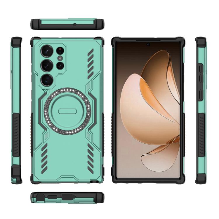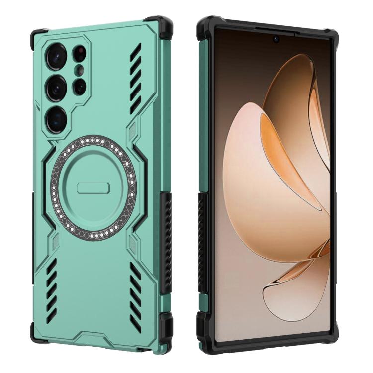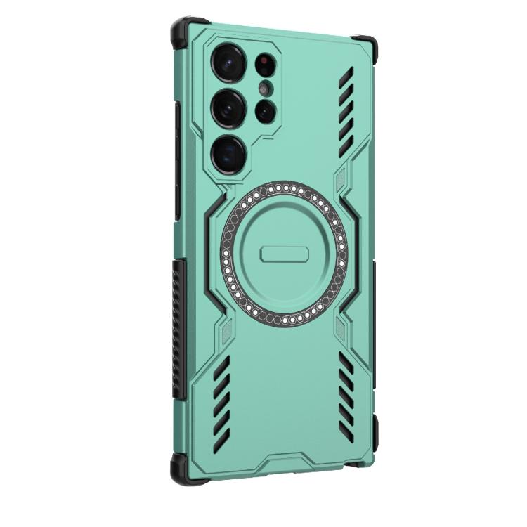 For Samsung Galaxy S22 Ultra 5G Butterfly Armor MagSafe Magnetic Ring Shockproof Phone Case(Light Green)