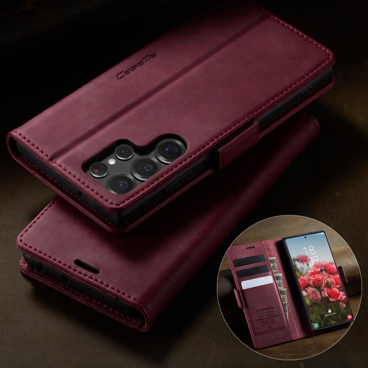 For Samsung Galaxy S22 Ultra 5G CaseMe 033 Calf Leather Lining Microfibre RFID Blocking Phone Case(Red)
