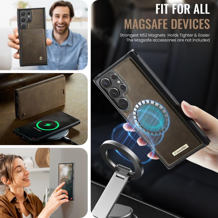 For Samsung Galaxy S22 Ultra 5G CaseMe C49 Magnetic RFID Blocking Detachable Wallet Leather Phone Case(Coffee)