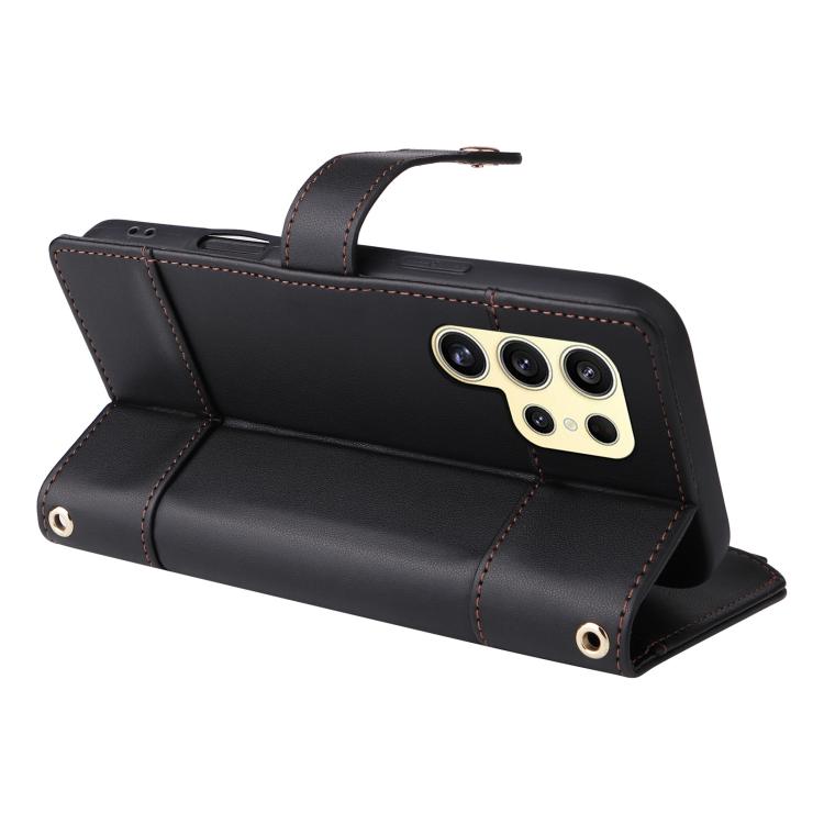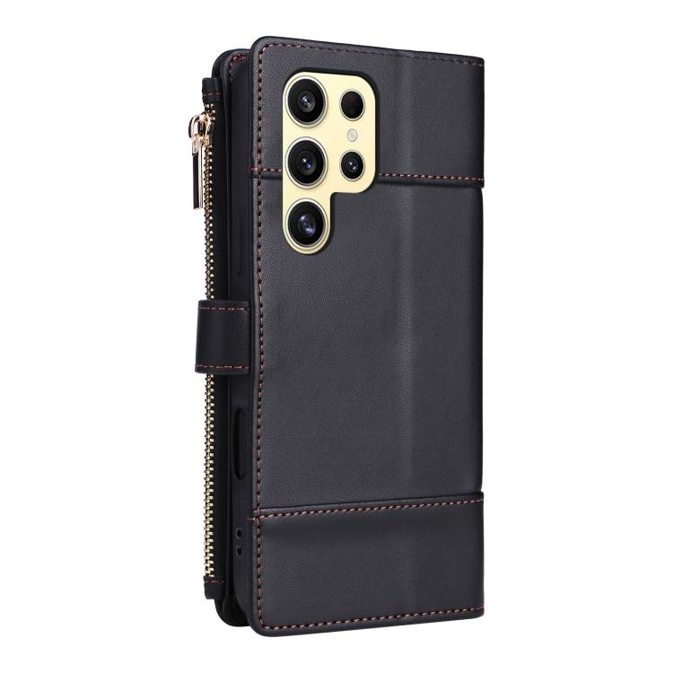 For Samsung Galaxy S22 Ultra 5G Crossbody Strap RFID Blocking Zipper Wallet Leather Phone Case(Black)