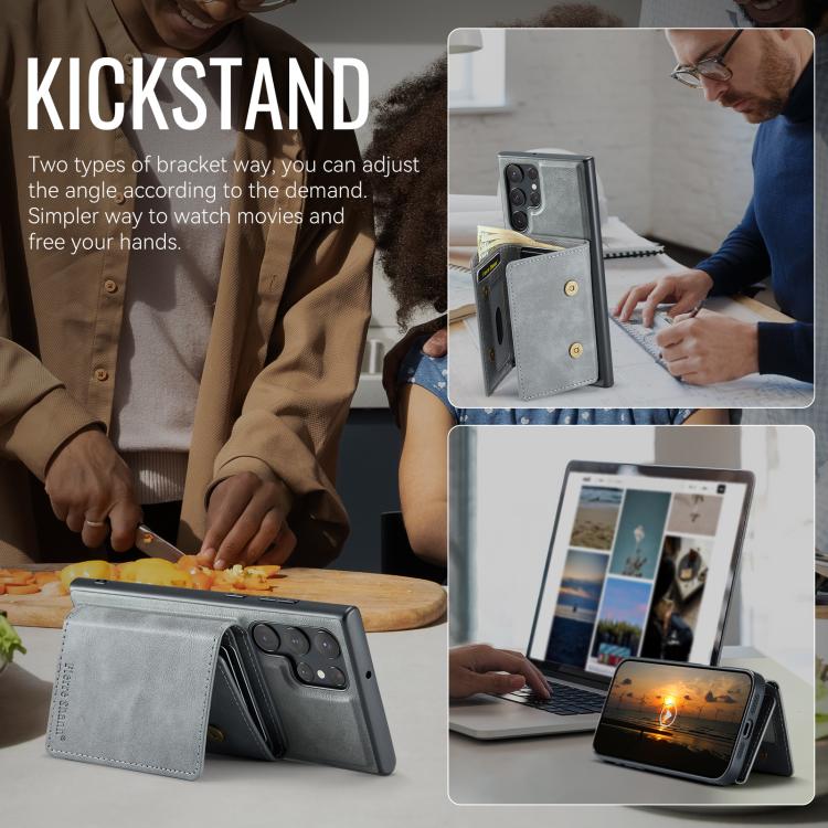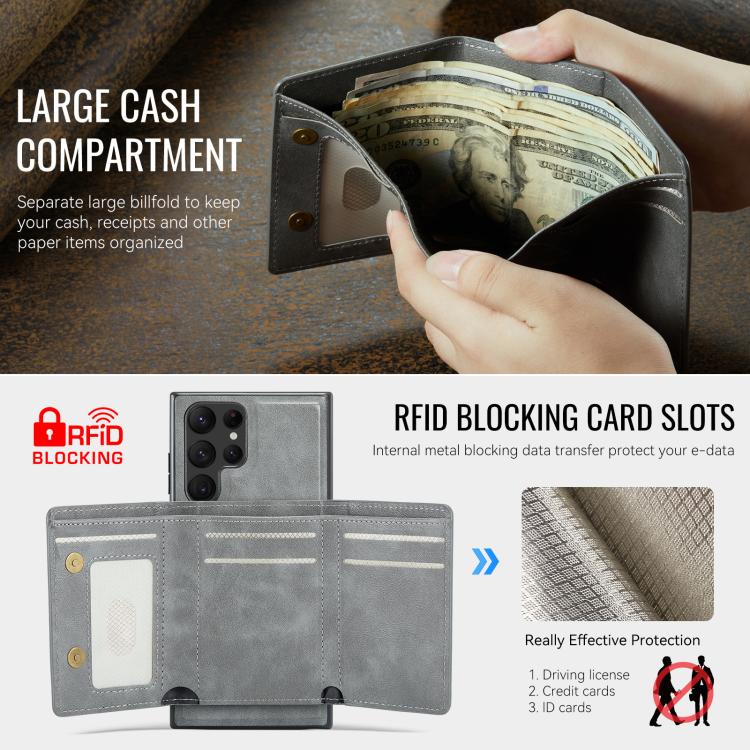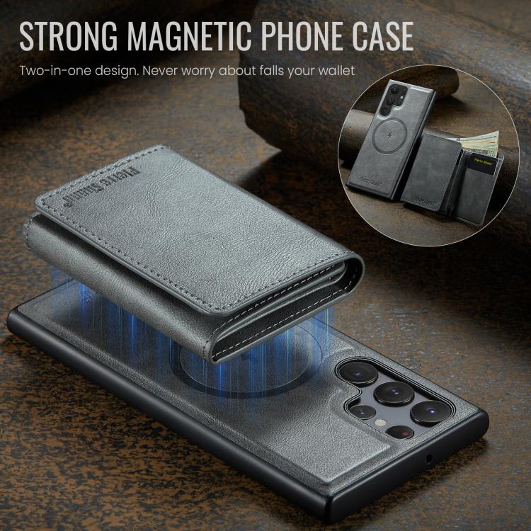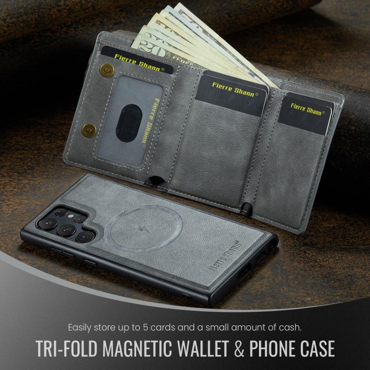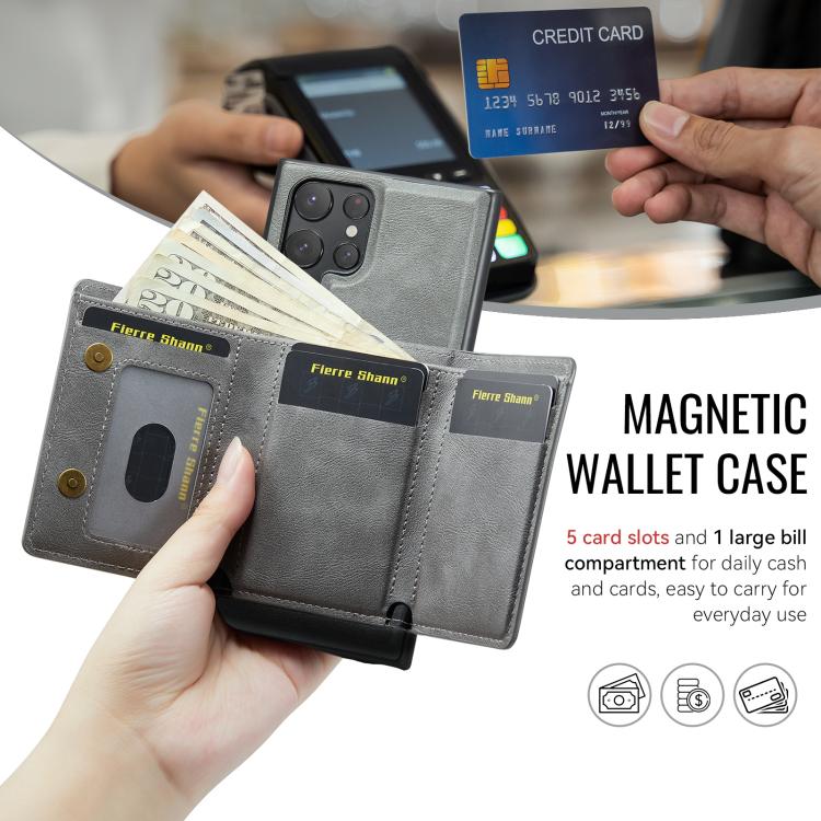 For Samsung Galaxy S22 Ultra 5G Fierre Shann 2 in 1 Holder RFID Card Slot Wallet MagSafe Phone Case(Grey)