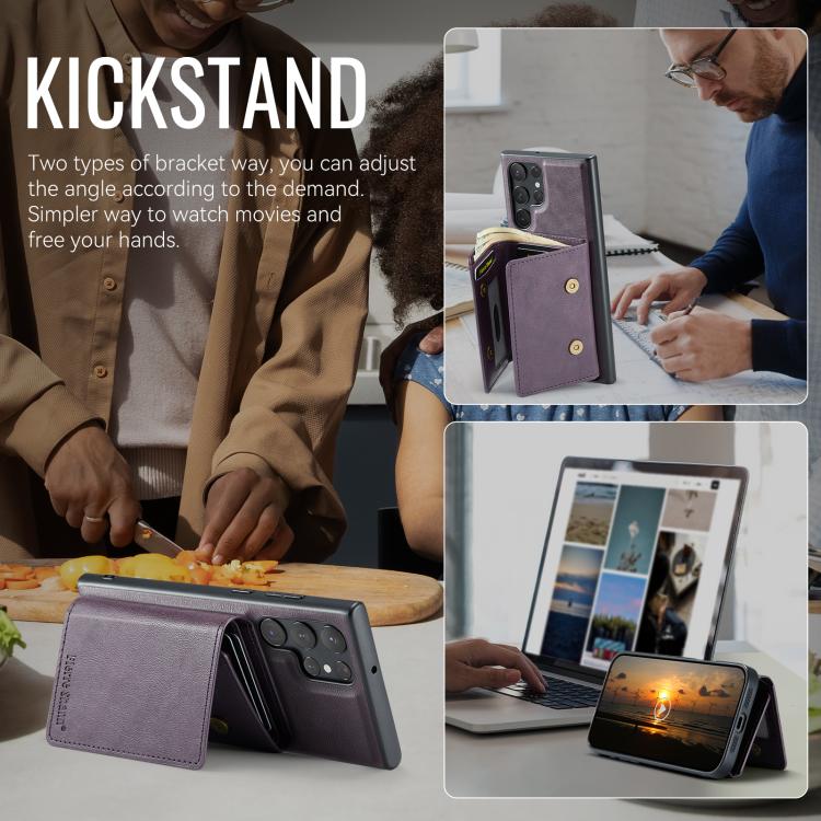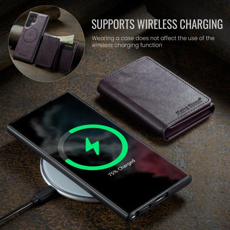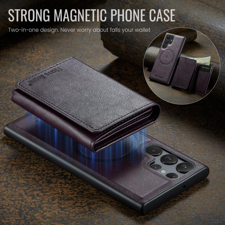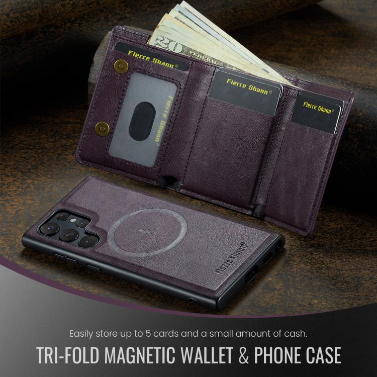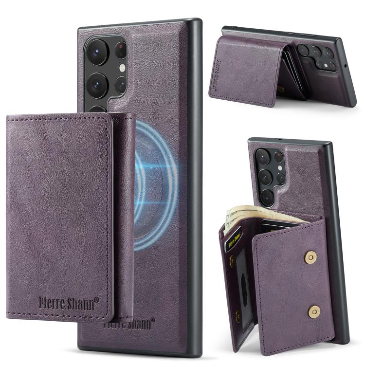 For Samsung Galaxy S22 Ultra 5G Fierre Shann 2 in 1 Holder RFID Card Slot Wallet MagSafe Phone Case(Purple)
