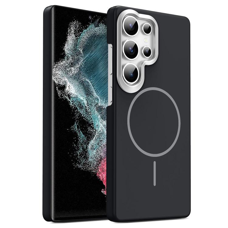 For Samsung Galaxy S22 Ultra 5G Gold Armor PC Thin Circle MagSafe Shockproof Phone Case(Black)
