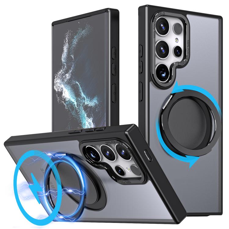 For Samsung Galaxy S22 Ultra 5G Kalebol 360-degree Rotating MagSafe Magnetic Holder Phone Case(Black)