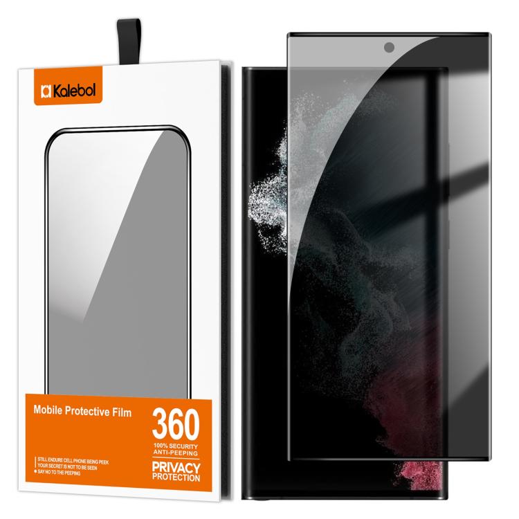 For Samsung Galaxy S22 Ultra 5G Kalebol Curved High-Aluminum Screen-Printed Full-Coverage Anti-Fingerprint Black-Border Privacy Tempered Glass Film