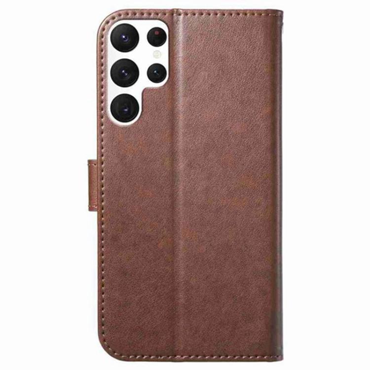 For Samsung Galaxy S22 Ultra 5G Lambskin 8-card Slot Leather Phone Case(Brown)