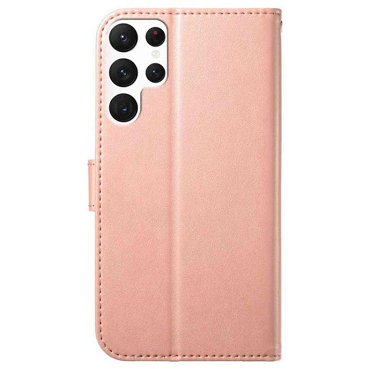 For Samsung Galaxy S22 Ultra 5G Lambskin 8-card Slot Leather Phone Case(Rose Gold)