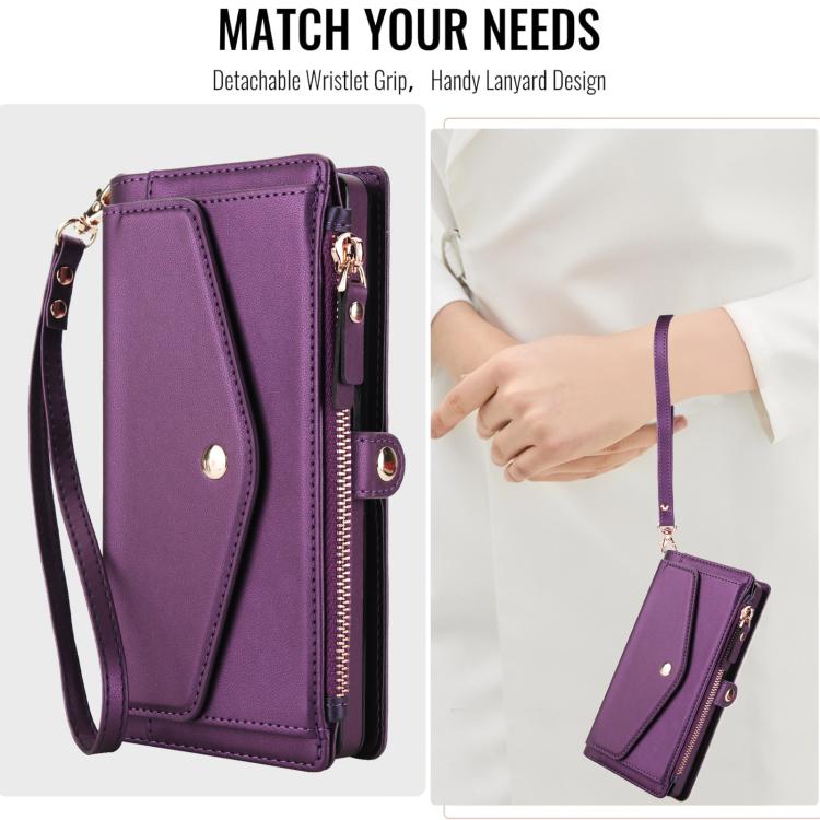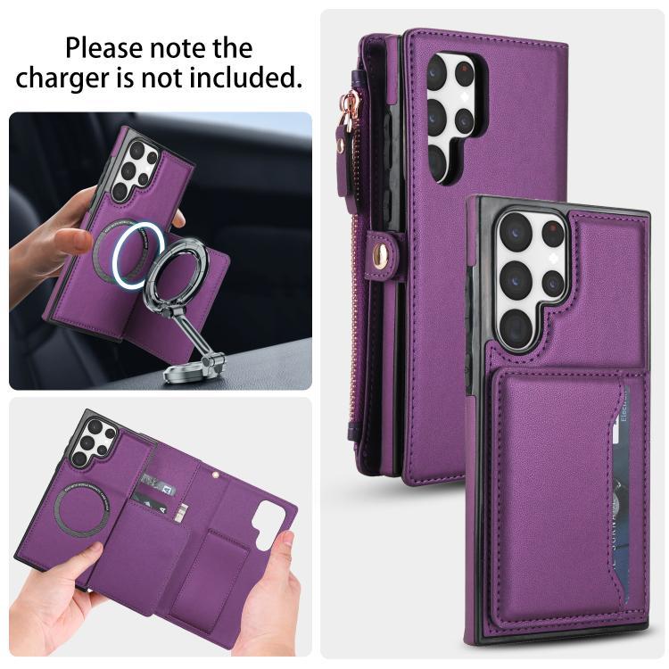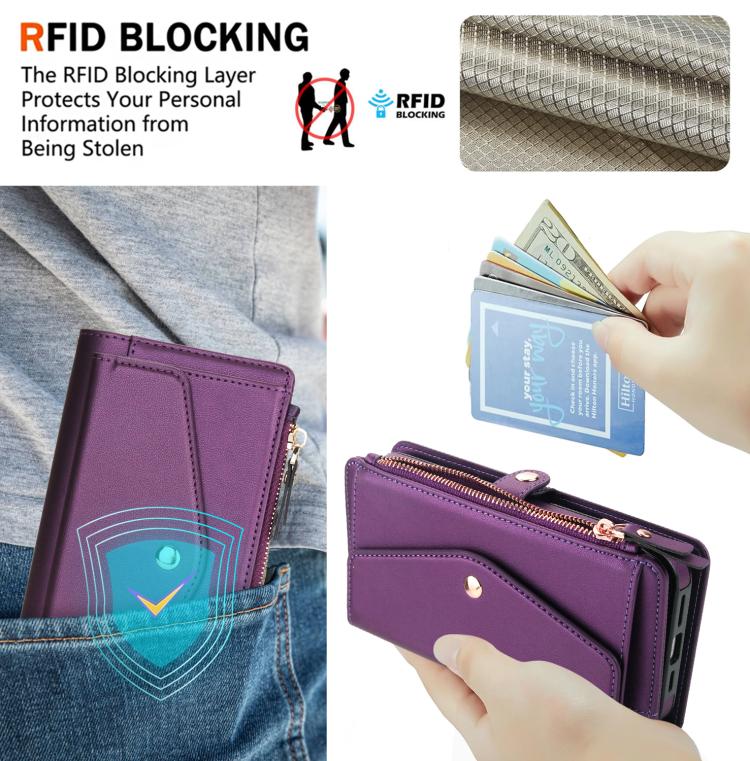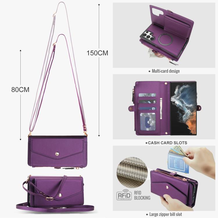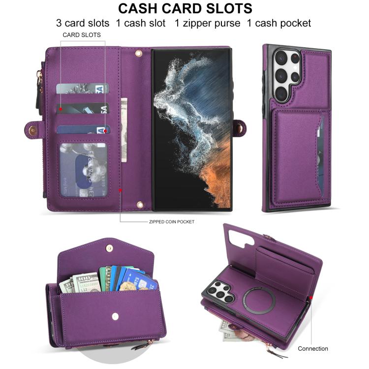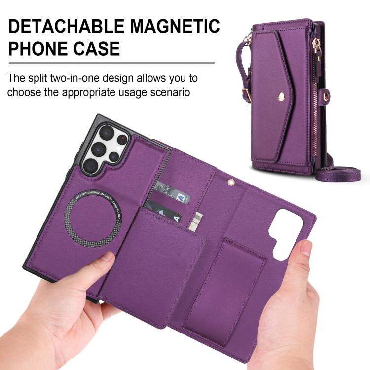 For Samsung Galaxy S22 Ultra 5G Multifunctional Wallet Detachable Leather Phone Case with Lanyard(Dark Purple)