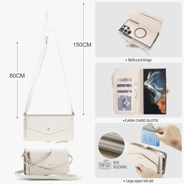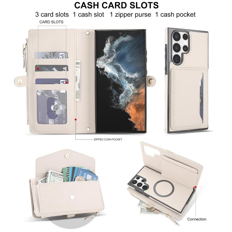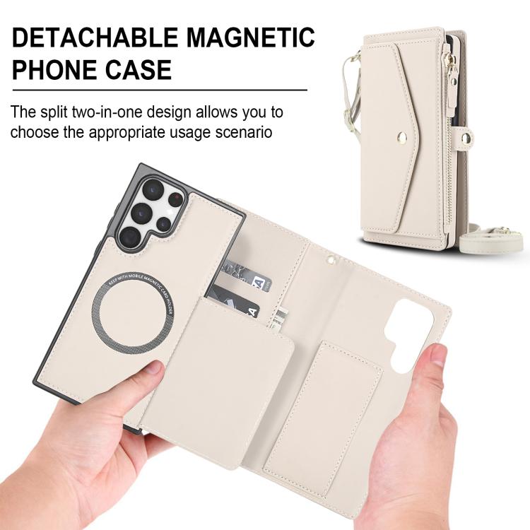 For Samsung Galaxy S22 Ultra 5G Multifunctional Wallet Detachable Leather Phone Case with Lanyard(White)