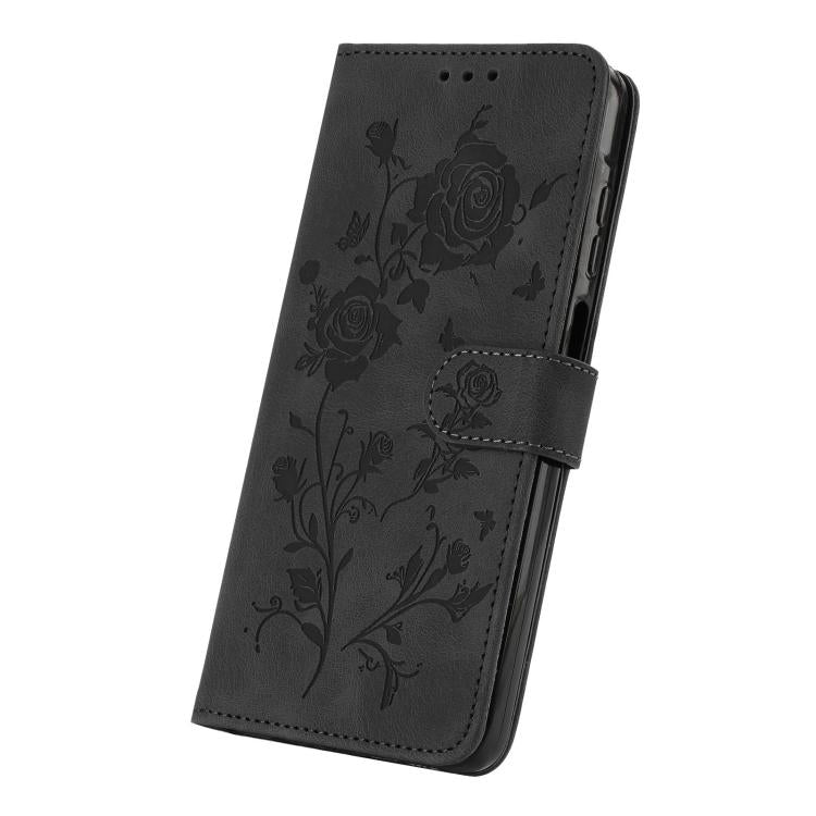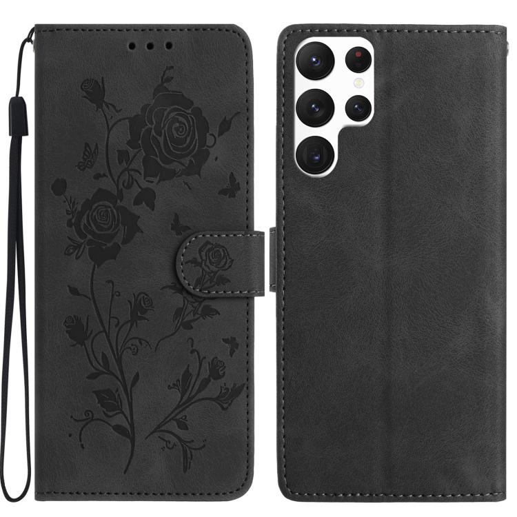 For Samsung Galaxy S22 Ultra 5G Rose Flower Embossing Pattern Leather Phone Case(Black)