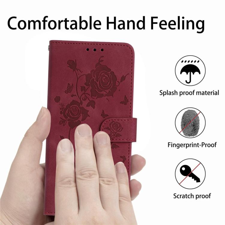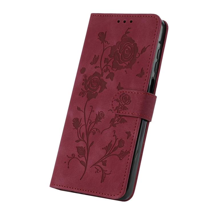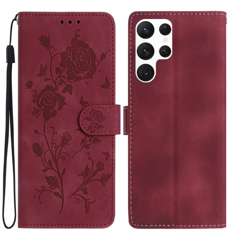 For Samsung Galaxy S22 Ultra 5G Rose Flower Embossing Pattern Leather Phone Case(Red)