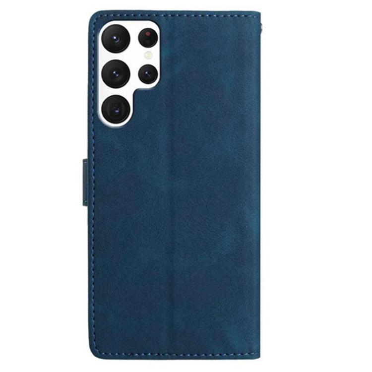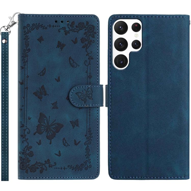 For Samsung Galaxy S22 Ultra 5G Secret Garden Butterfly Pattern Leather Phone Case(Dark Blue)
