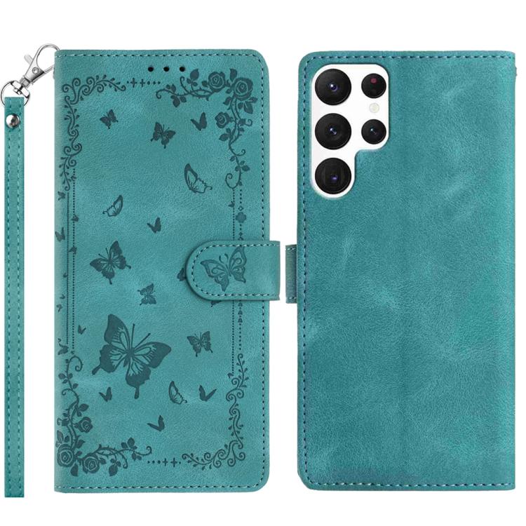 For Samsung Galaxy S22 Ultra 5G Secret Garden Butterfly Pattern Leather Phone Case(Green)