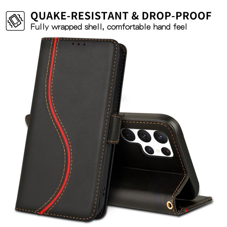 For Samsung Galaxy S22 Ultra 5G Side Buckle S Curve Leather Phone Case(Black)
