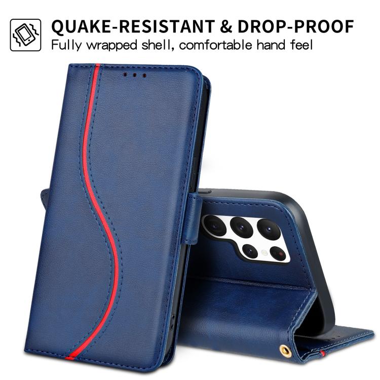For Samsung Galaxy S22 Ultra 5G Side Buckle S Curve Leather Phone Case(Blue)