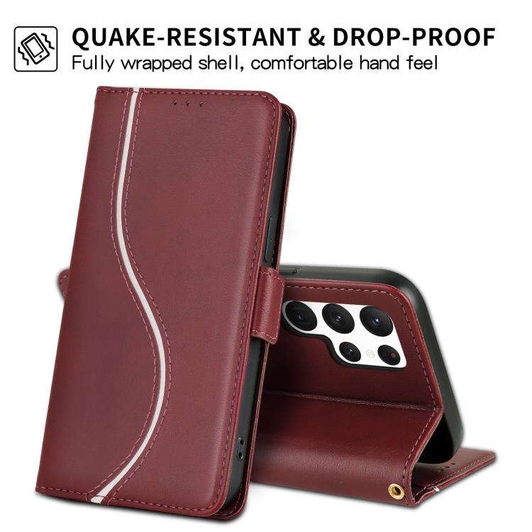 For Samsung Galaxy S22 Ultra 5G Side Buckle S Curve Leather Phone Case(Red)