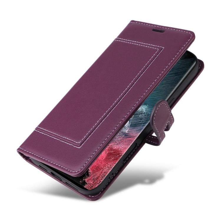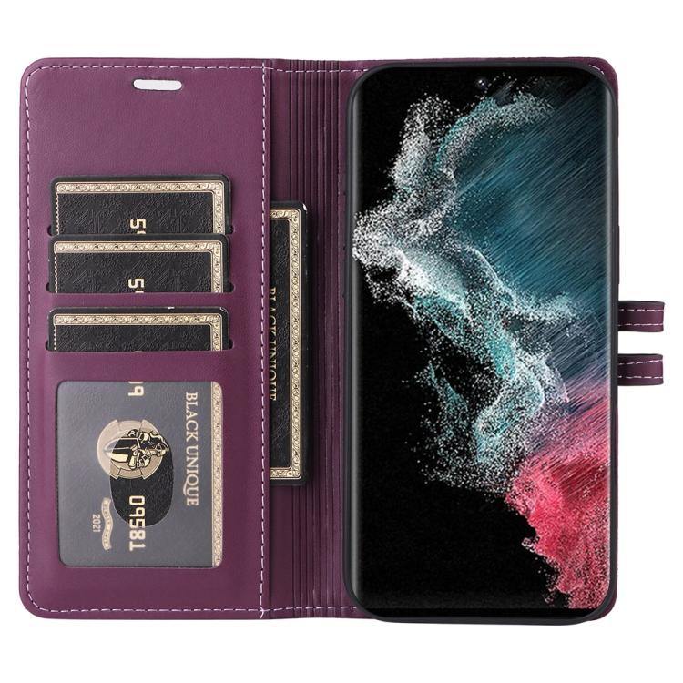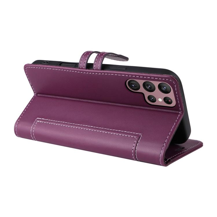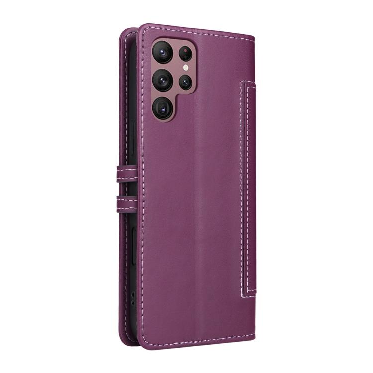 For Samsung Galaxy S22 Ultra 5G Stitched Magnetic Buckle Leather Phone Case(Purple)