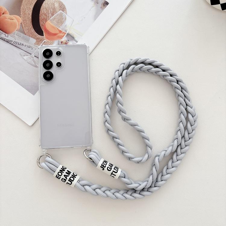 For Samsung Galaxy S22 Ultra 5G Transparent Acrylic Shockproof Phone Case with Crossbody Lanyard(Gray)