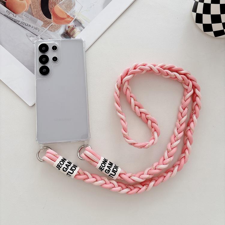 For Samsung Galaxy S22 Ultra 5G Transparent Acrylic Shockproof Phone Case with Crossbody Lanyard(Pink)