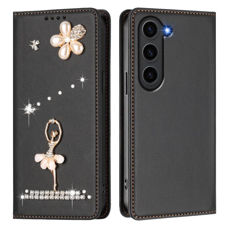 For Samsung Galaxy S23+ 5G Ballet Girl Diamond Studded RFID Vegan Leather Phone Case(Black)