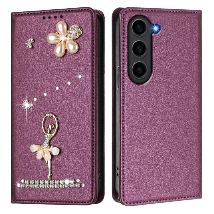 For Samsung Galaxy S23+ 5G Ballet Girl Diamond Studded RFID Vegan Leather Phone Case(Violet)