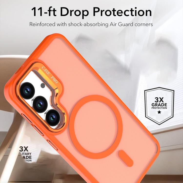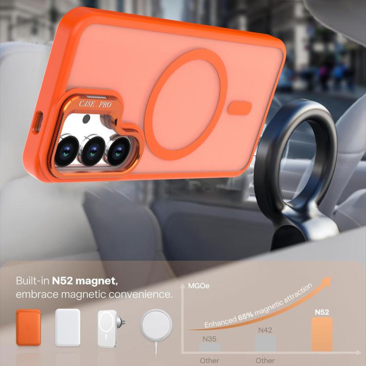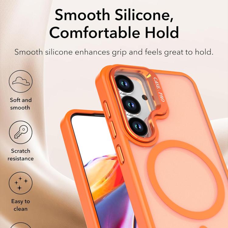 For Samsung Galaxy S23+ 5G Bright Color Frosted Skin-feel Camera Bracket Magsafe Phone Case(Orange)