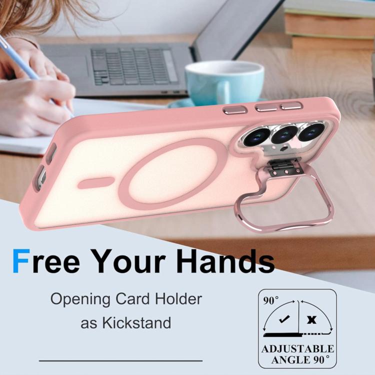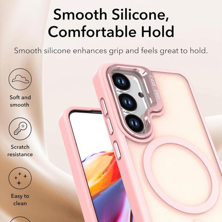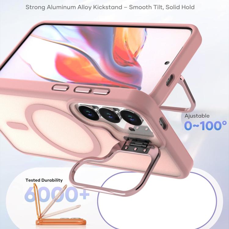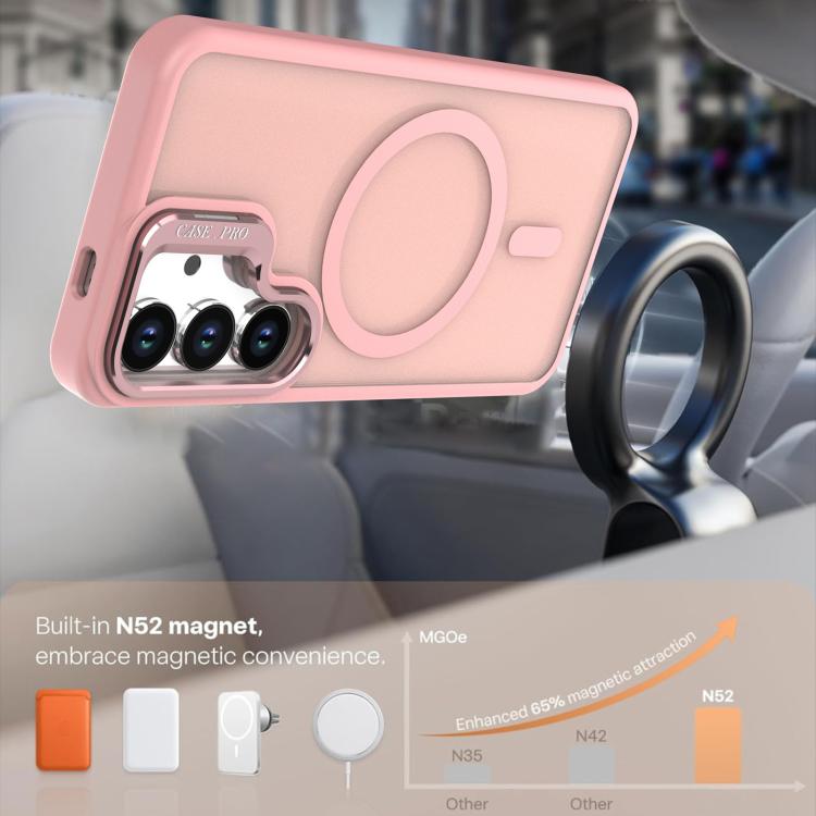 For Samsung Galaxy S23+ 5G Bright Color Frosted Skin-feel Camera Bracket Magsafe Phone Case(Pink)