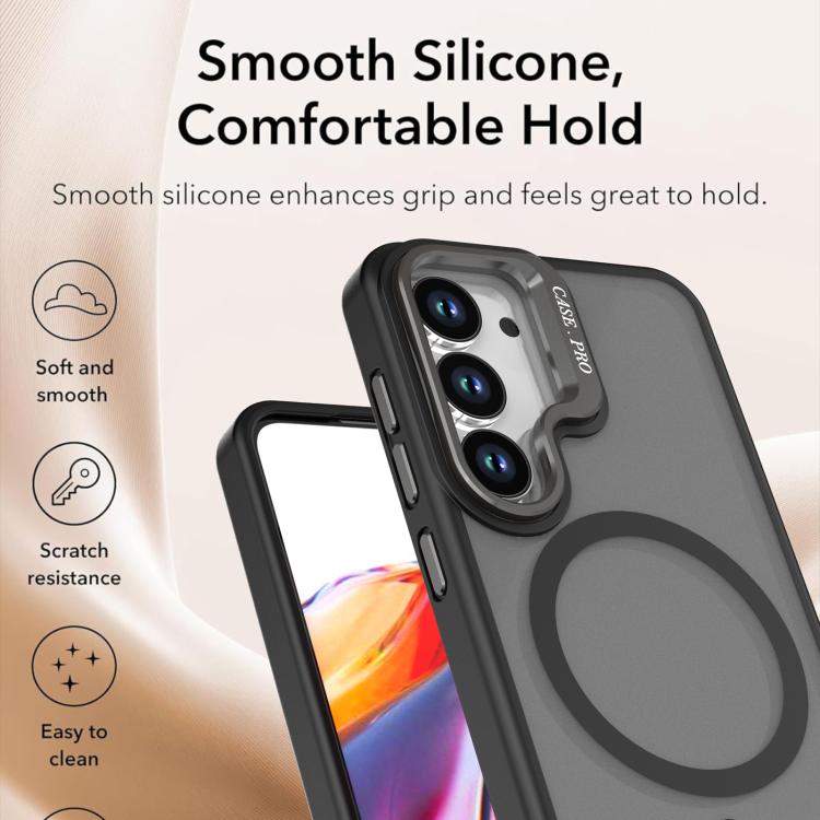 For Samsung Galaxy S23 FE 5G Bright Color Frosted Skin-feel Camera Bracket Magsafe Phone Case(Black)