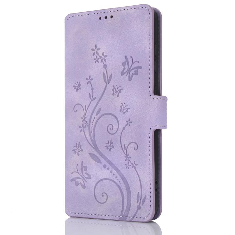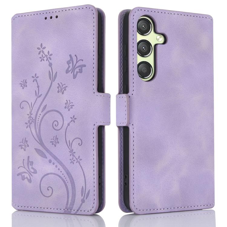 For Samsung Galaxy S23 FE 5G Dreamy Butterfly Love Flower Embossed Leather Phone Case(Purple)