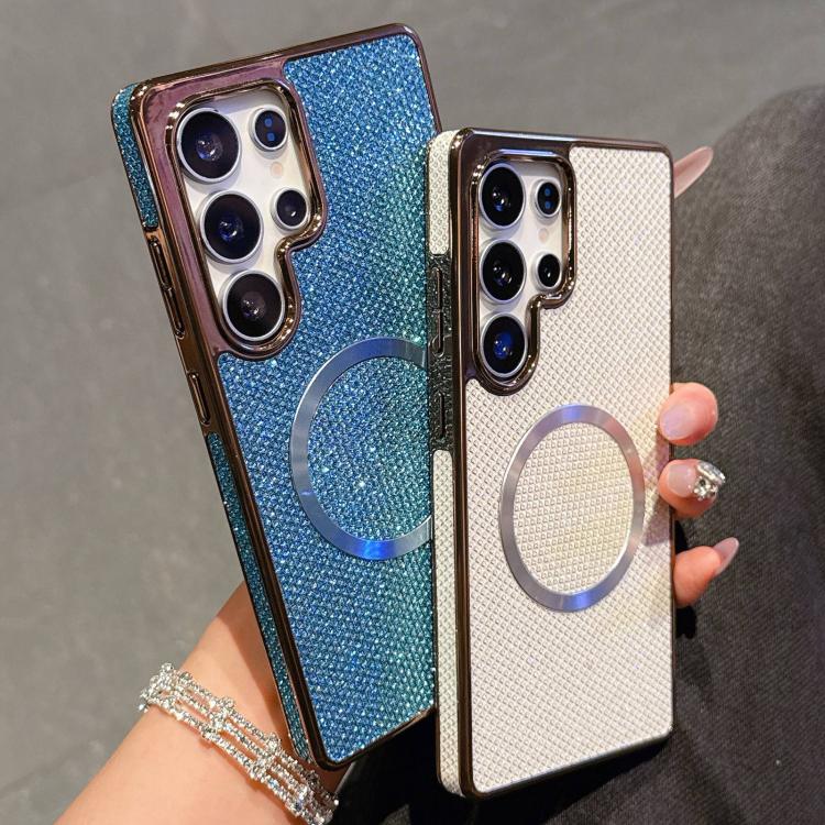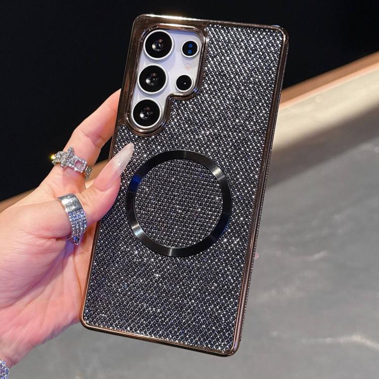 For Samsung Galaxy S23 FE 5G Electroplating PC Glitter Grain MagSafe Phone Case(Black)