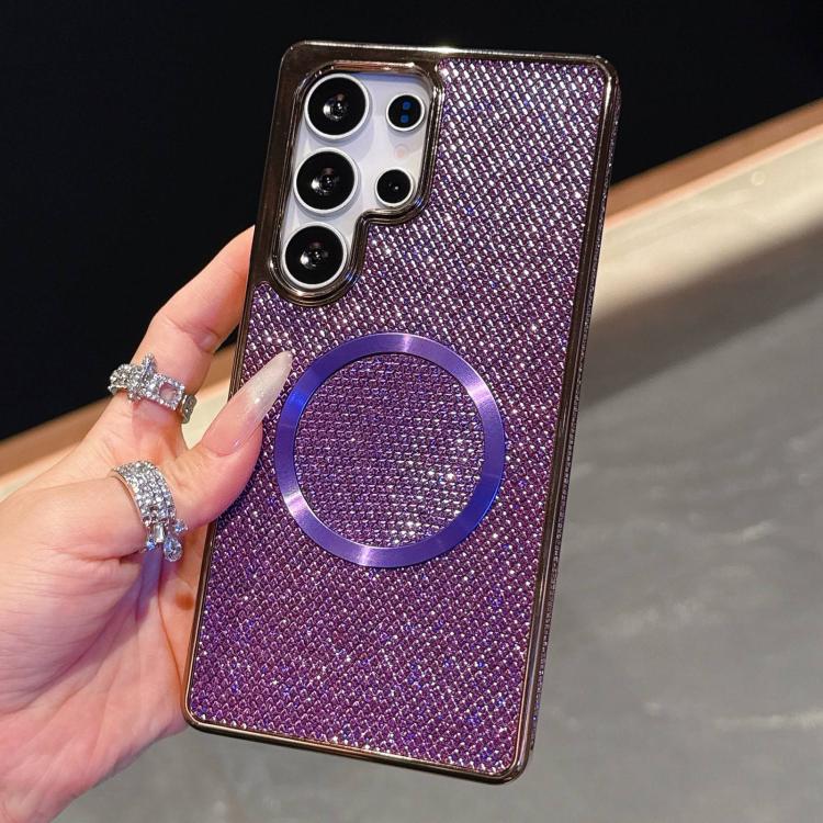 For Samsung Galaxy S23 FE 5G Electroplating PC Glitter Grain MagSafe Phone Case(Purple)