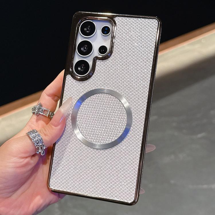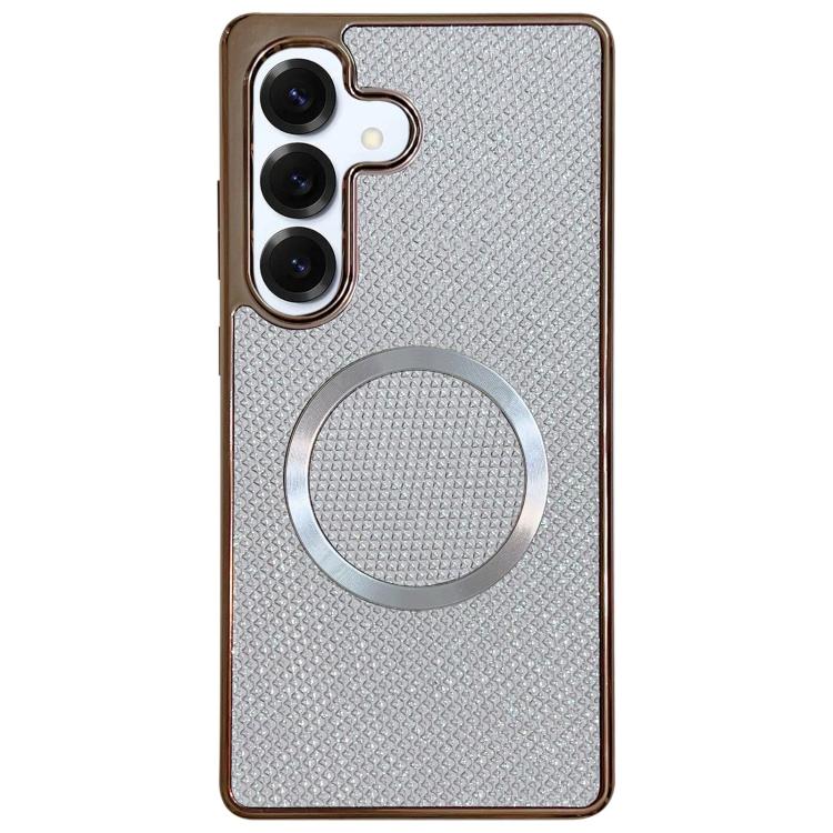 For Samsung Galaxy S23 FE 5G Electroplating PC Glitter Grain MagSafe Phone Case(White)
