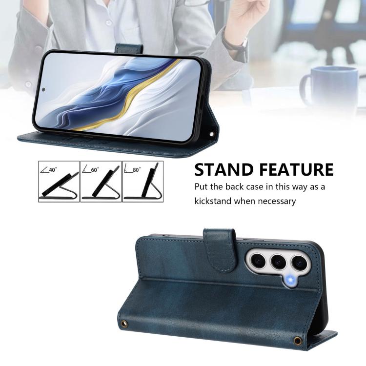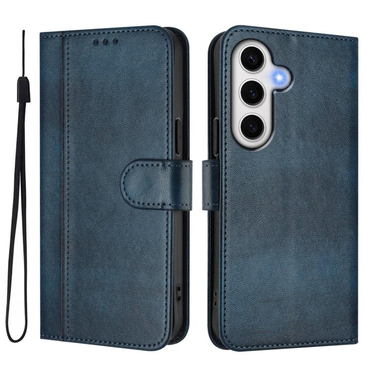 For Samsung Galaxy S23 FE 5G Line Splicing Buckle Retro Leather Phone Case(Dark Blue)