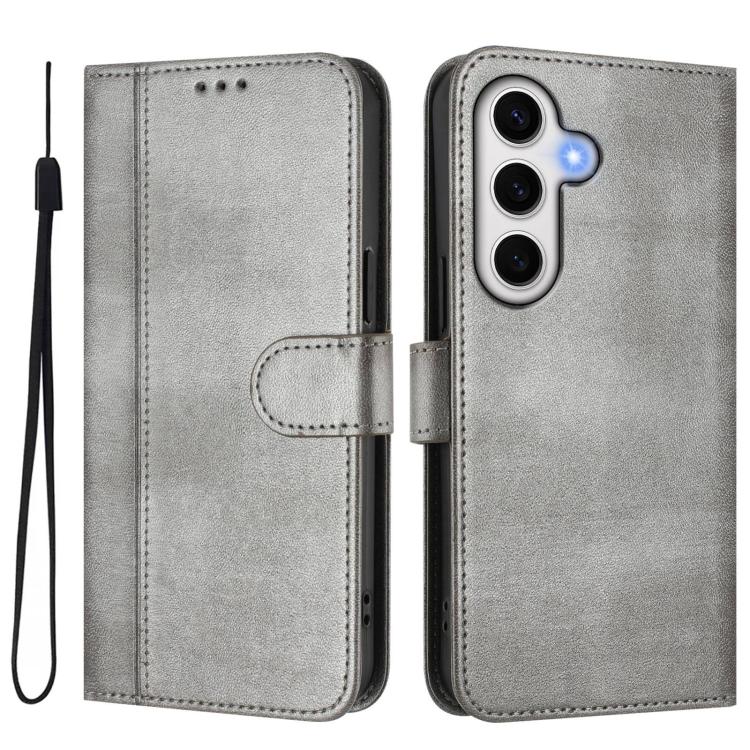 For Samsung Galaxy S23 FE 5G Line Splicing Buckle Retro Leather Phone Case(Grey)