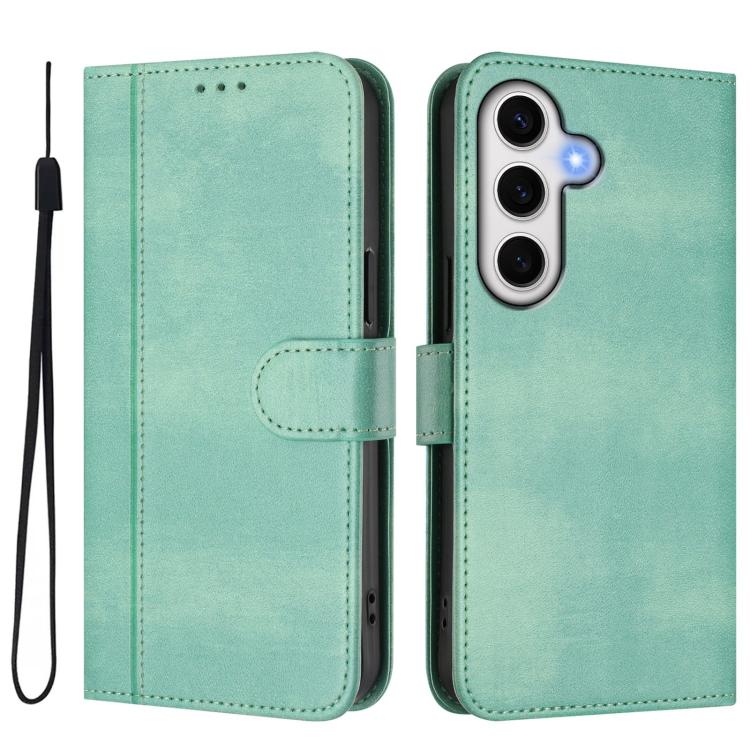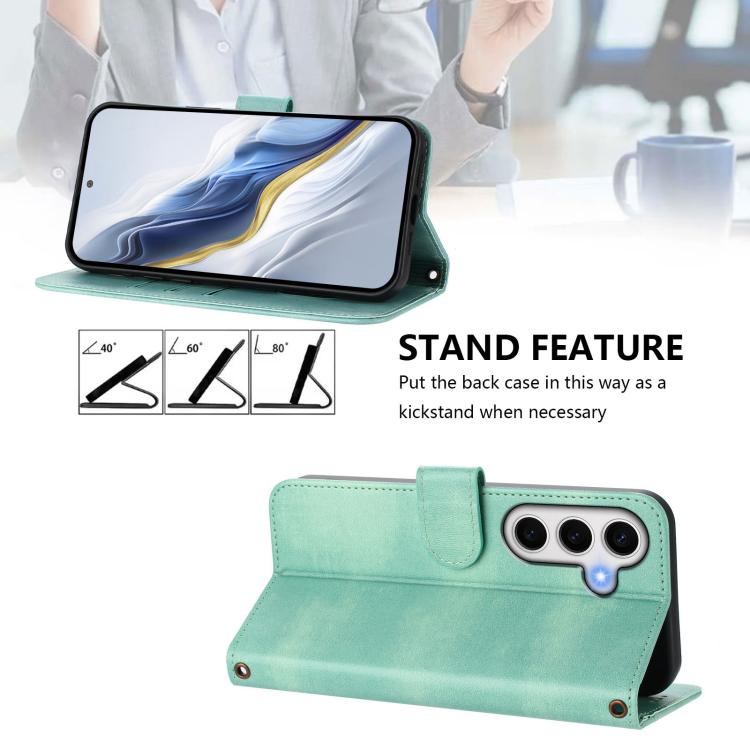 For Samsung Galaxy S23 FE 5G Line Splicing Buckle Retro Leather Phone Case(Mint Green)