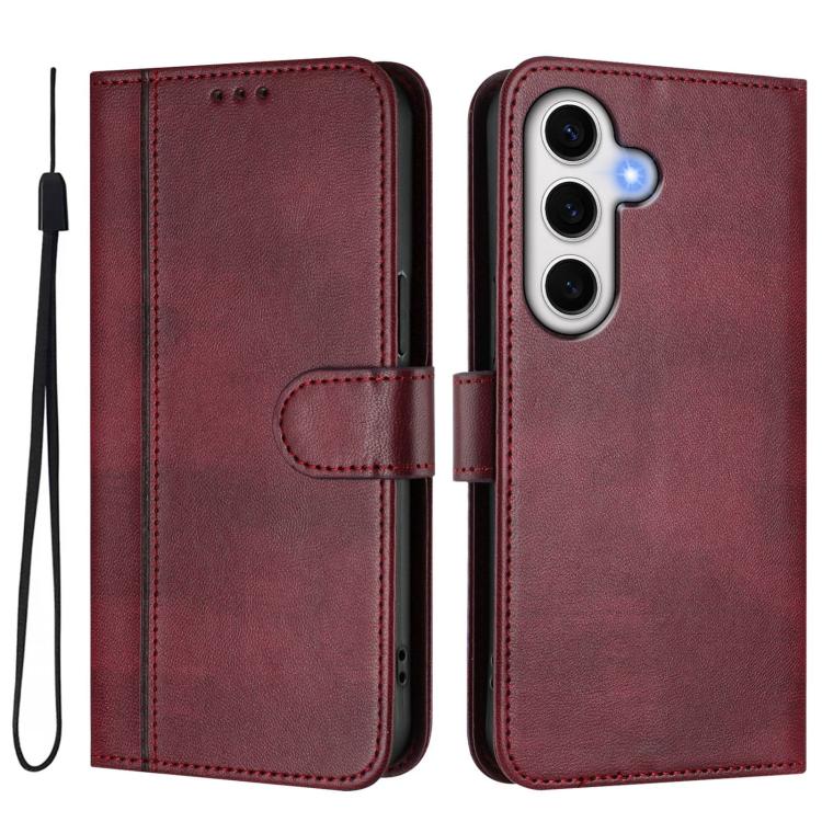 For Samsung Galaxy S23 FE 5G Line Splicing Buckle Retro Leather Phone Case(Wine Red)