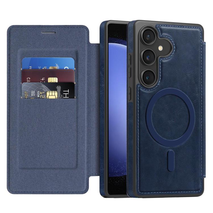 For Samsung Galaxy S23 FE 5G Linton MagSafe Leather Phone Case(Blue)