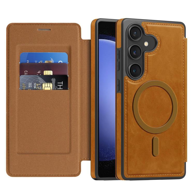 For Samsung Galaxy S23 FE 5G Linton MagSafe Leather Phone Case(Brown)