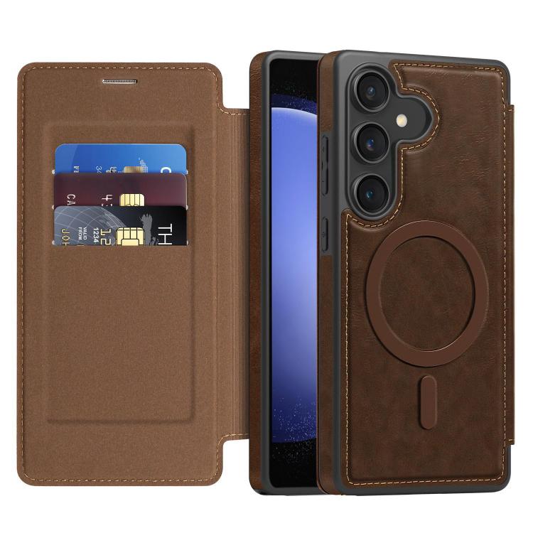 For Samsung Galaxy S23 FE 5G Linton MagSafe Leather Phone Case(Coffee)